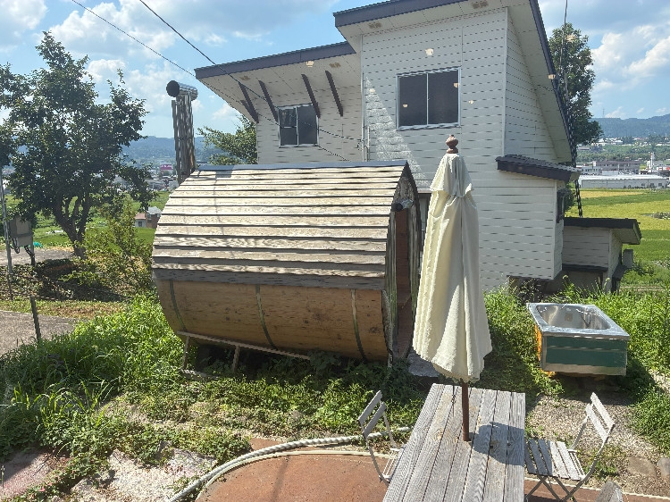 最初に訪れたのは、農福泊の拠点として最近整備されたばかりの「sobainari」。今回のワークショップは「帰る旅」との共同企画のため、宿泊希望者の方にはこちらの寝床をご提供いただきました。外にはサウナが設置されていて、参加者のみなさんも驚いていました!