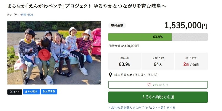 【残り2日!ガバメントクラウドファンディング】寄付金額1,535,000円 支援人数64人 ありがとうございます