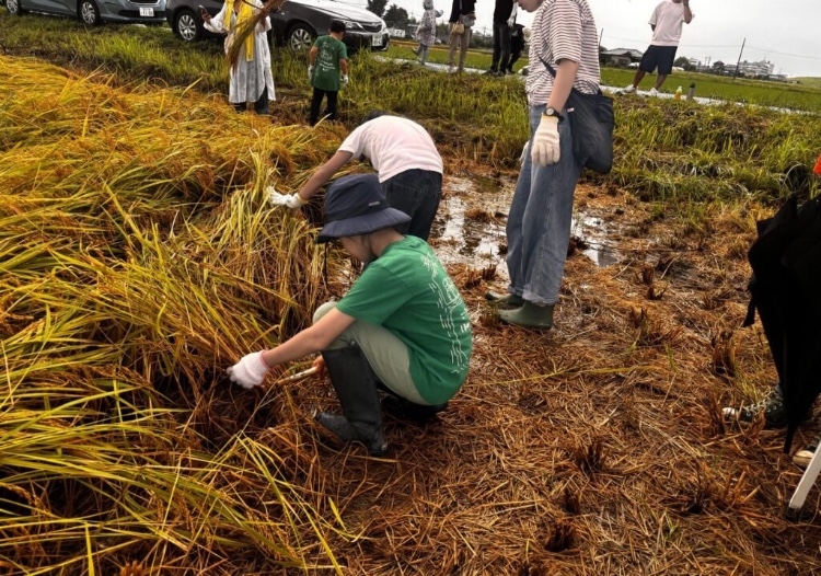いつもお世話になっている農園で稲刈り体験を実施しました。当日はあいにくのお天気でしたが、こどもたちは雨にも負けず元気いっぱい!ここ数年の気温上昇で稲の育ちが早まり、例年9月に行う稲刈りも、今年は8月に行う田んぼが多かったそうです。今回は“今年最後の稲刈り”。「残りの稲を全部刈ろう!」と声を掛け合いながら、いよいよスタートしました。