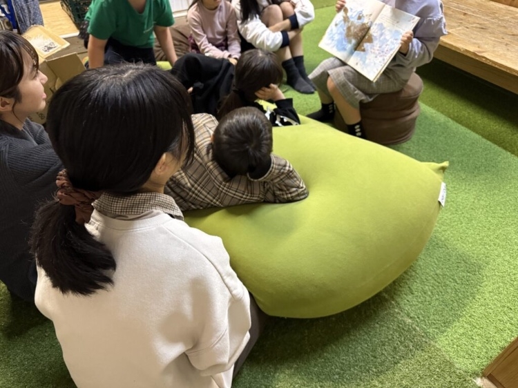 校舎に地域の方をお招きして定期的に“おはなし会”を開催したり、「感情図書館hidamari」の学生チームが校舎内に図書館コーナーを開いて読み聞かせをしてくれたりと、さまざまな形で物語に触れる機会が増えてきています。