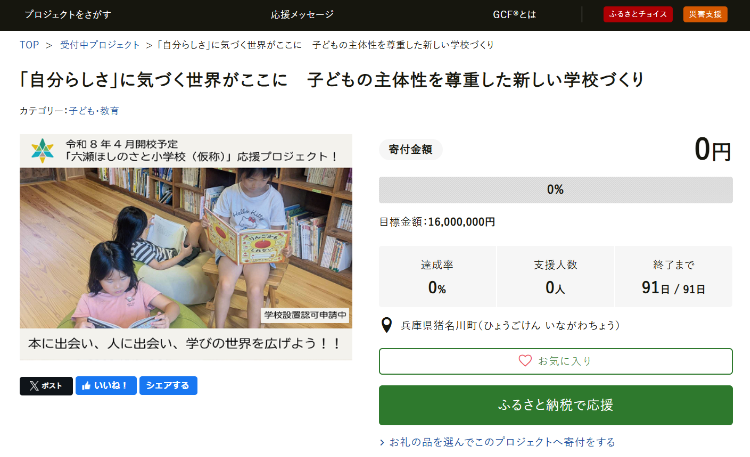 さて、このたび、いよいよ、六瀬ほしのさと小学校の改修に向けて、猪名川町のガバメントクラウドファンディングがスタートしました。