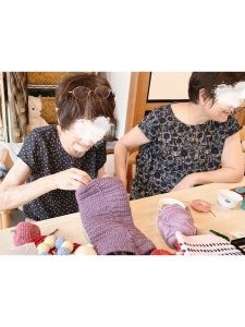 編みぐるみの作り方を教え合ったり、どの小物を付けようか相談したり。