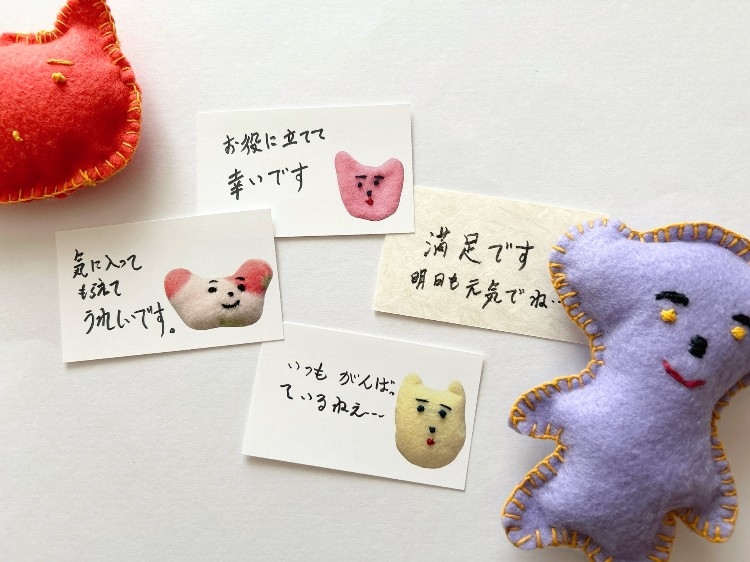 お役に立てて幸いです。気に入ってもらえて嬉しいです。そんな物づくりの想いの他に、いつもがんばっているねと心和むメッセージも。