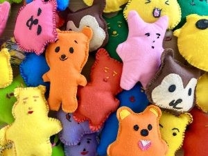 何十年縫製の仕事をしてこられ、今熱中しているのはカラフルなフェルトやふわふわ素材のぬいぐるみ制作です。