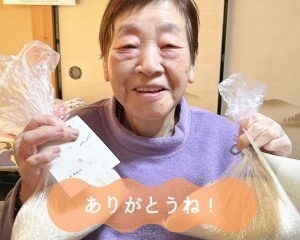 可愛い文字のメッセージと頑張って育てたお米のプレゼントに、マス子さんも嬉しそうです(^^)