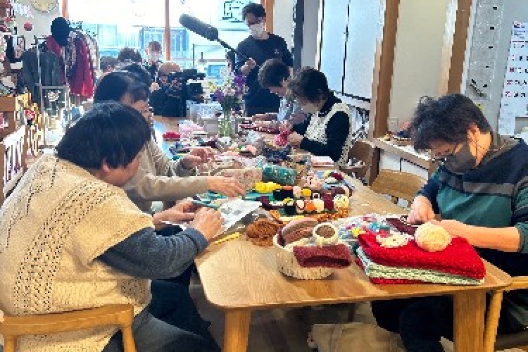 参加者の皆さまは、いつも通り和やかな雰囲気の中で編み物を楽しみながら制作されていました。自宅で編んできた作品を見せ合ったり、春をイメージしたマフを持参されたりと、会話も弾み、温かな時間となりました。