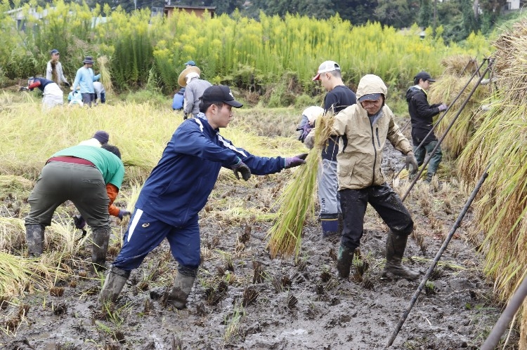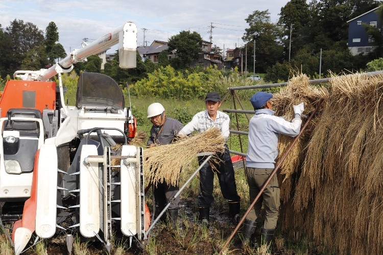 農福連携を推進している当法人では10月1日午前、農薬不使用の「あんしん魚沼産コシヒカリ」の稲刈りと天日干し作業を、ボランティアさんと利用者・職員の計30余名で行い、無事完了しました。